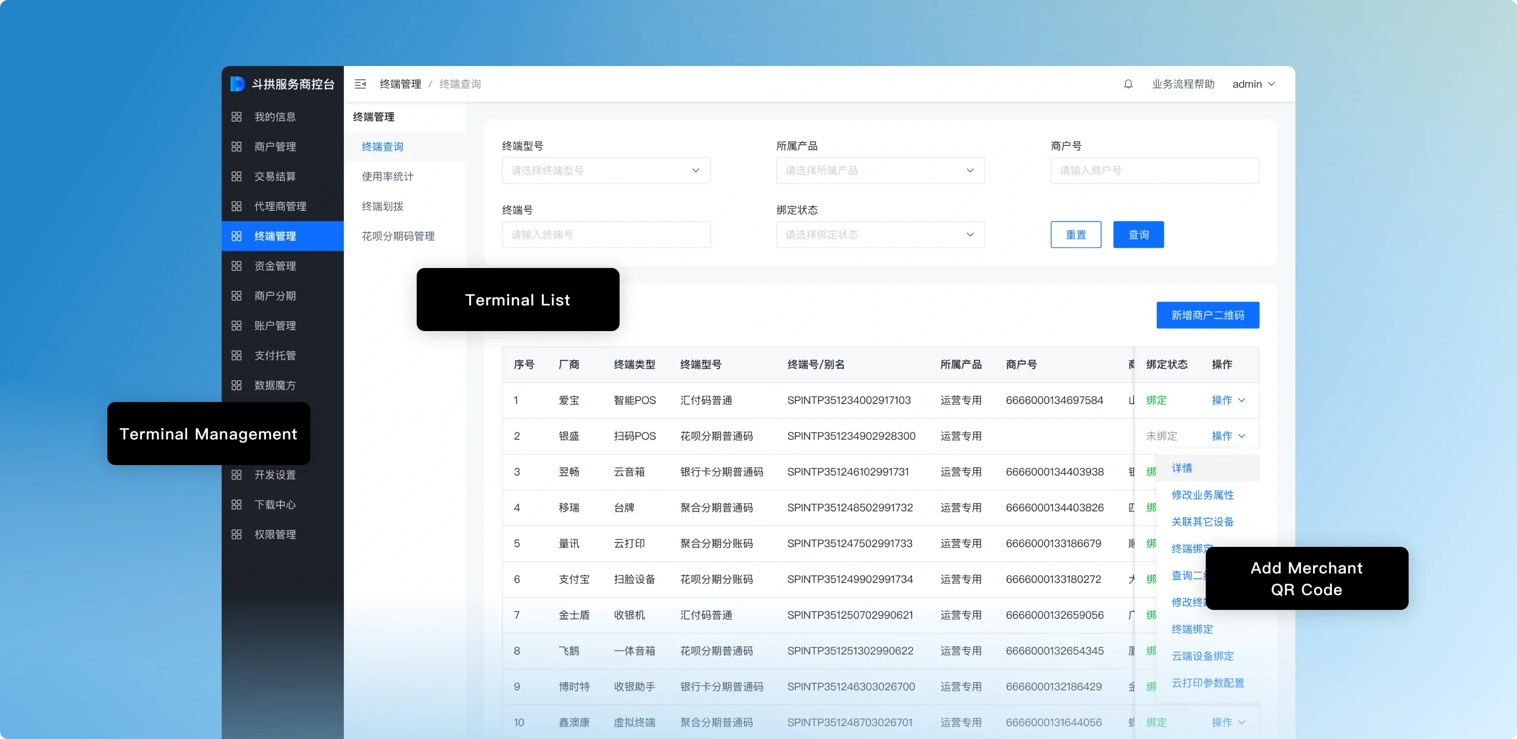 hardware terminal functions, including QR code ordering, customized settlement, voice reminder and other